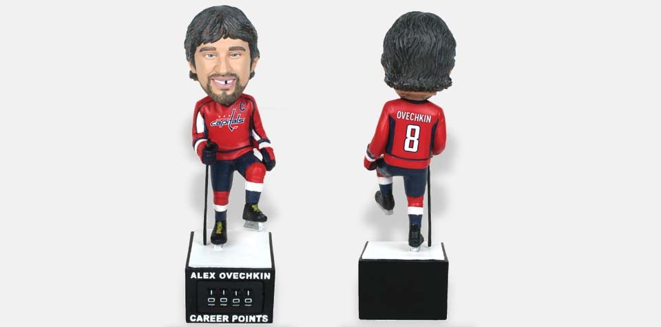 The Capitals are offering the first Hockey counter bobblehead, featuring Alex Ovechkin and a points total counter. This bobblehead is available with purchase of holiday ticket packages.